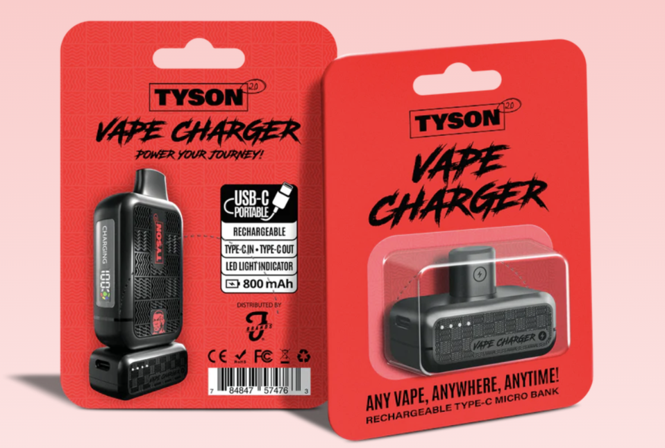 The e-cigarette brand TYSON recently released an e-cigarette Charger product named “TYSON 2.0 Vape Charger” on its brand official website. This charger adopts the Type-C interface and can be used as a mobile power bank at the same time.
