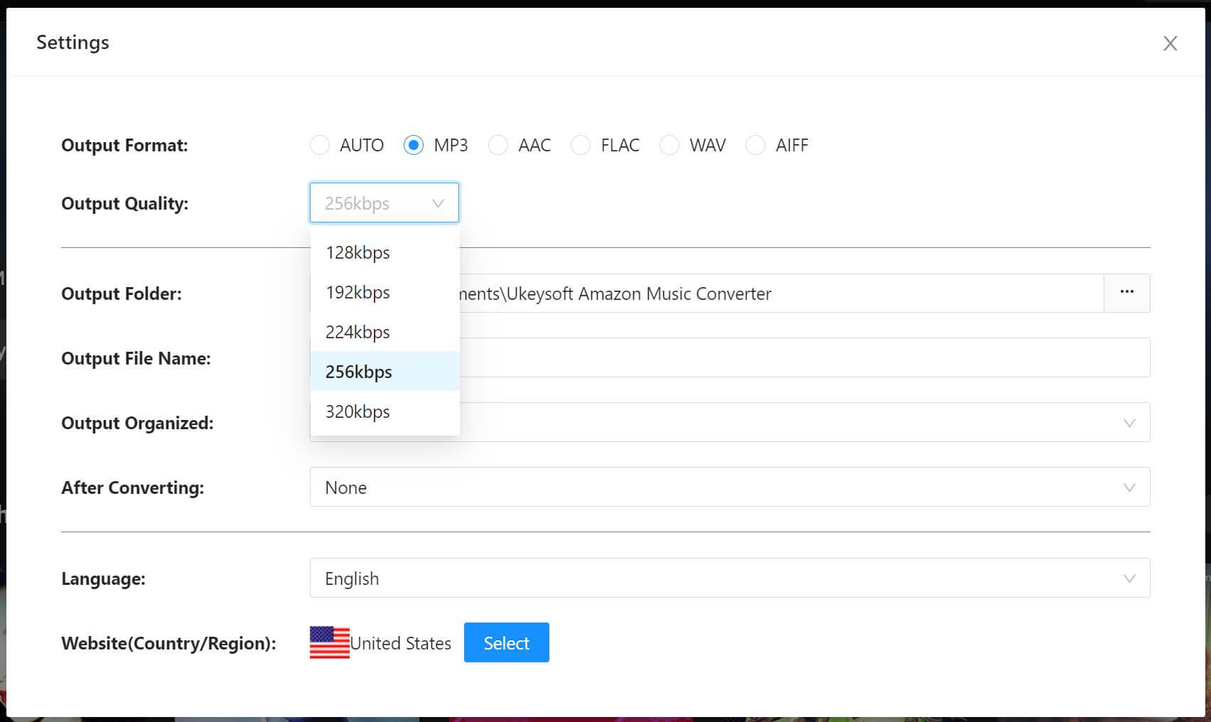 The default format is AUTO M4A format, please choose the MP3 for Amazon Music. Besides, you can also adjust the output quality to 320kbps!