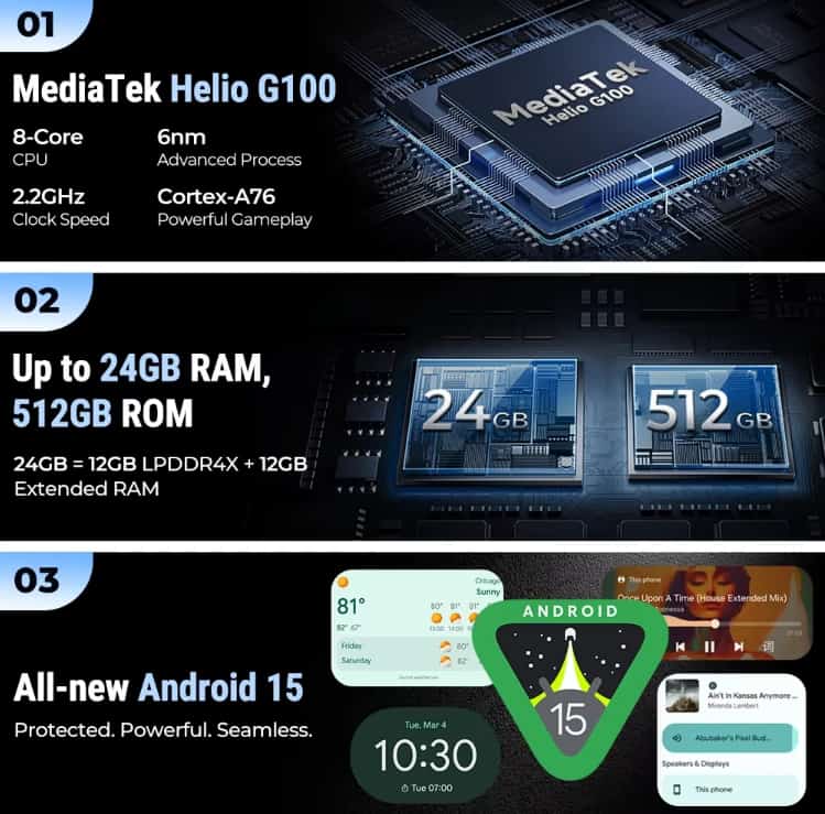 With 24GB of RAM (combining physical and extended memory) and 512GB of storage (expandable), it offers smooth performance for multitasking and ample space for all your photos, videos, and apps. Running on the latest Android 15, it provides a clean, modern software experience.