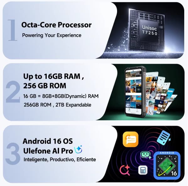Under the hood, the Ulefone Rugking 5 Pro packs a powerful 16GB of RAM and 256GB of internal storage. This allows you to run multiple apps smoothly and store all your important files, photos, and videos without worrying about running out of space. Whether you’re using the phone for gaming, heavy multitasking, or work applications, the Ulefone Rugking 5 Pro ensures seamless performance with no lag or slowdown.
