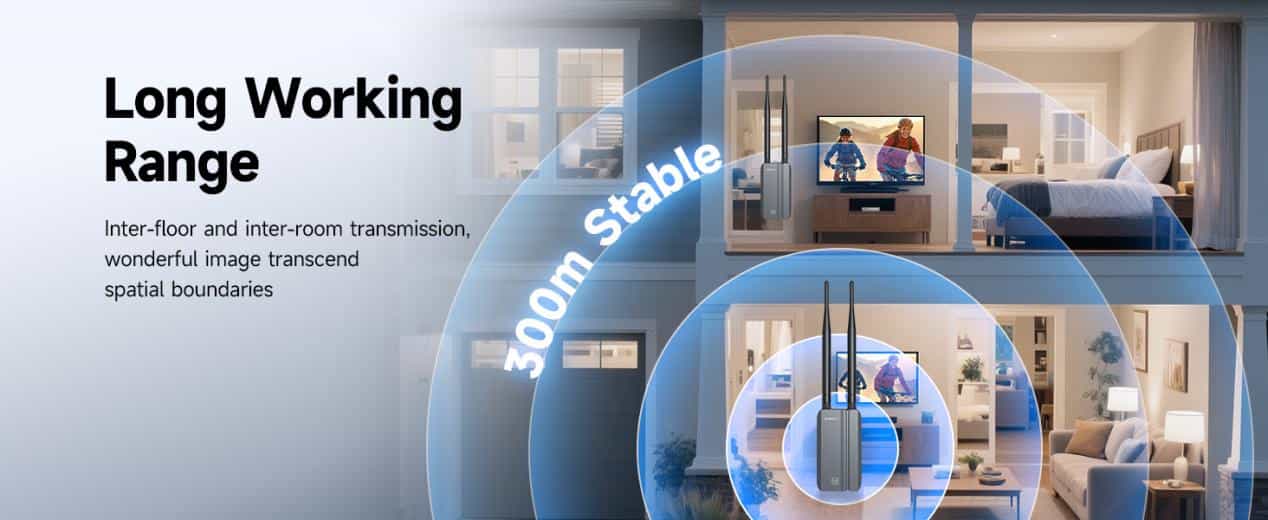Unlike many wireless HDMI systems that falter when faced with distance and obstacles, the ST4 leverages advanced 5GHz HDMI transmission technology. This enables it to maintain a stable and clear signal, effortlessly penetrating walls and floors.
