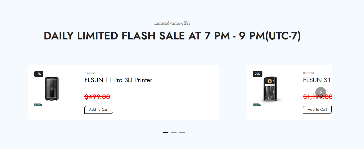 For one week only, FLSUN is rolling out a series of irresistible promotions. Each day brings something fresh, with flash sales starting at 7 PM (UTC-7). If you’ve ever had your eye on the FLSUN T1 Pro, S1 Pro, or SR Super Racer, this is your chance to snag them at prices you won’t see again anytime soon.