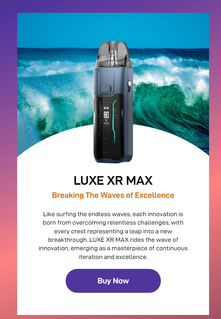 Like surfing the endless waves, each innovation is born from overcoming relentless challenges, with every crest representing a leap into a breakthrough. The LUXE XR MAX rides the wave of innovation, emerging as a masterpiece of continuous iteration and excellence. Its design and performance epitomize the spirit of breaking through barriers, making it a must-have for those who seek the pinnacle of vaping technology.
