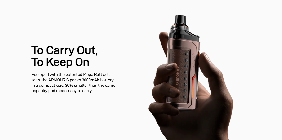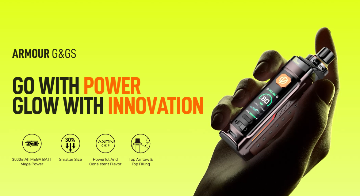- ARMOUR G ❘ GS: Featuring COREX technology and Neo PULSE MODE, the ARMOUR G delivers intense and consistent flavor throughout battery depletion. This is especially beneficial for flavor-focused users, as it maximizes vapor consistency with every puff.