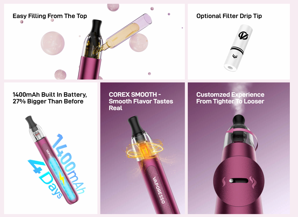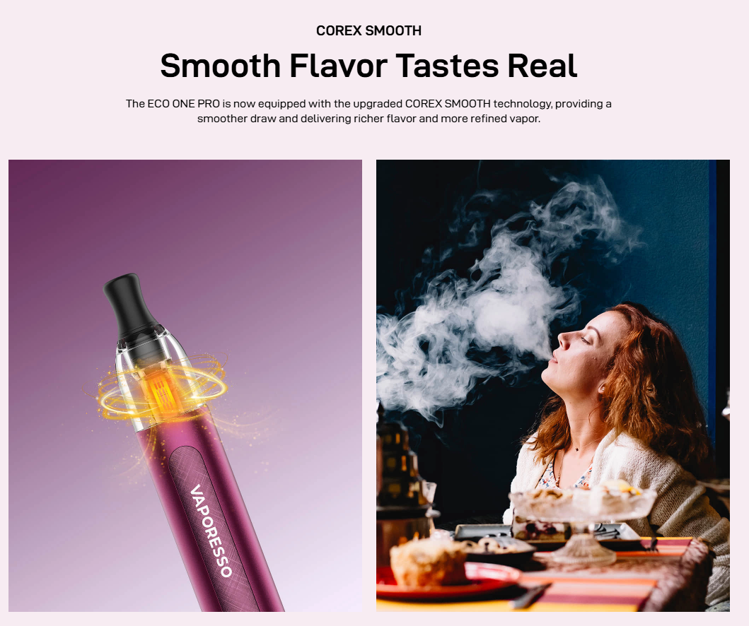 - COREX Smooth Technology with improved flavor accuracy and smoother vapor