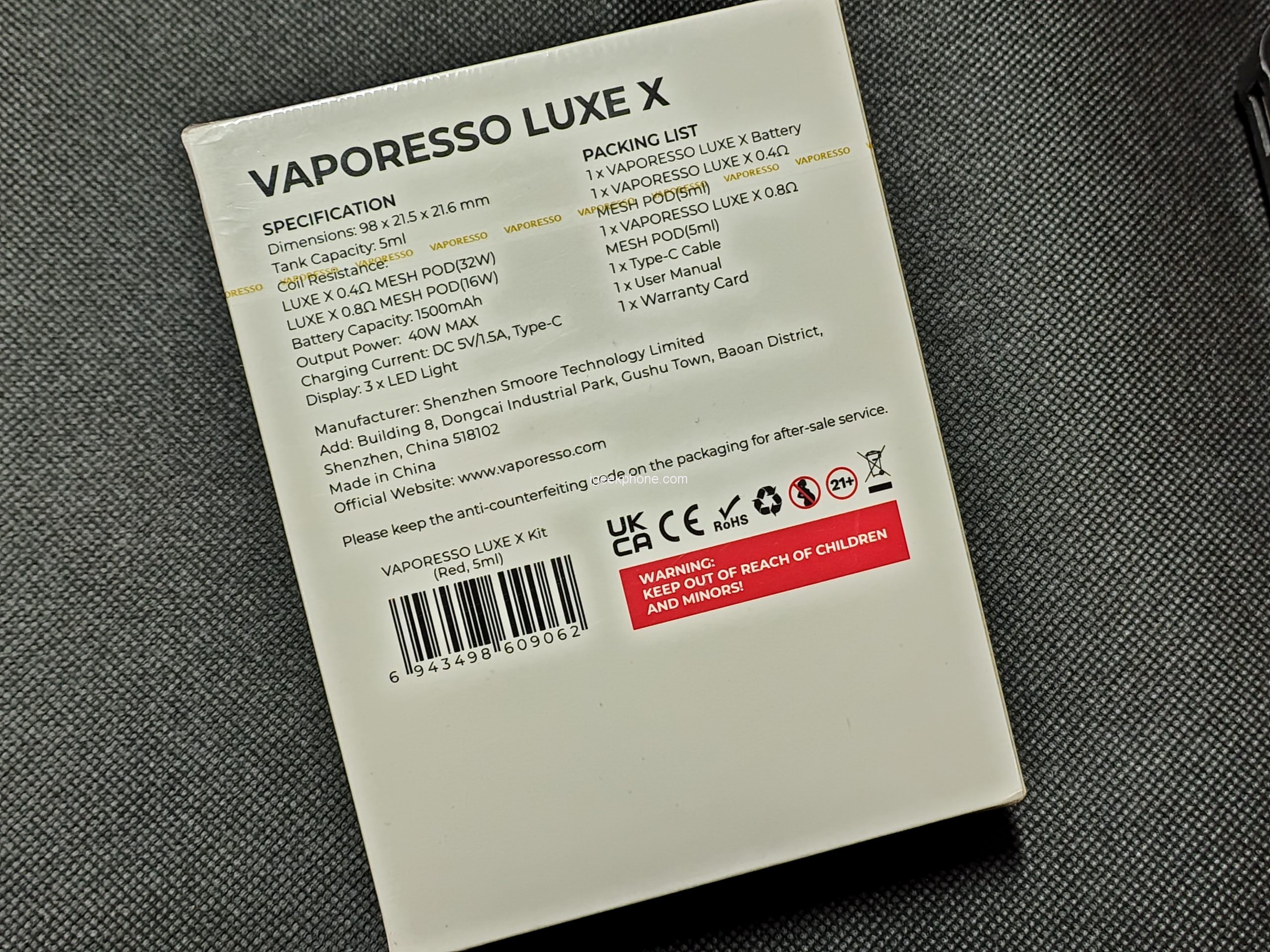 - Coil Resistance: LUXE X 0.4Ω MESH POD(32W), LUXE X 0.8Ω MESH POD(16W)