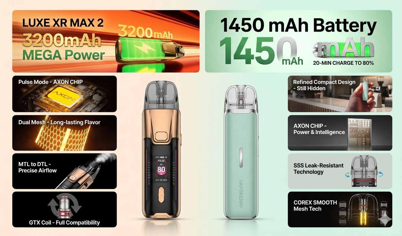 • Vaporesso LUXE XR MAX 2 vs LUXE Q3 Quick Comparison Review