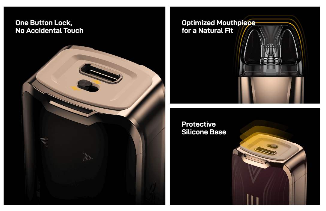 The LUXE XR MAX 2 screams high-performance right from the first glance. It’s robust, slightly bulkier at 108mm tall, but the added heft brings with it a premium vibe. Dynamic lighting modes (Nebula, Wave, Vital), a 0.96” TFT screen, visible airflow adjustment, and a one-button lock make this device feel futuristic. The silicone base offers added stability, while the overall design still manages to stay compact given the powerhouse battery inside.