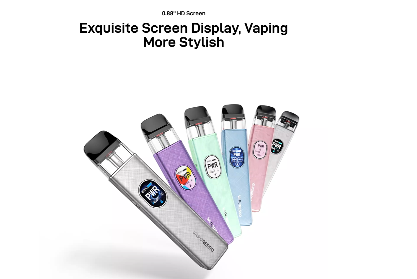 The XROS 5 keeps things simpler with six colorful themes on its smaller display. You won’t get touchscreen functionality or detailed analytics, but the essential information—battery life, power level, and puff count—remains clearly visible. It’s straightforward without unnecessary complexity.
