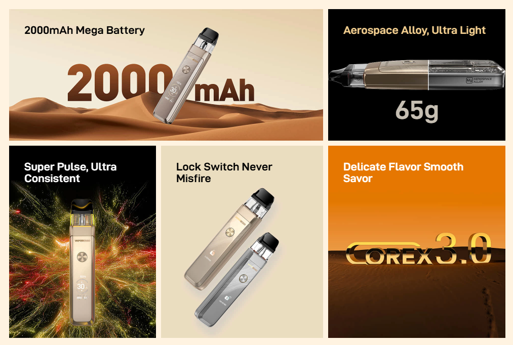 Where the Vaporesso XROS PRO 2 really flexes is in its tech. The 2000mAh battery is the largest ever in its class, 67% bigger than its predecessor, and it charges to two days of vaping in just 30 minutes. Pair that with a 0.96″ TFT color screen, six UI themes, precise wattage control in 0.5W increments, puff tracking, a lockable fire button, and the new COREX 3.0 heating technology, and you’ve got a device that gives you full control over your vaping experience. The Super Pulse mode keeps output consistent from a full battery right down to the last few puffs, something that was previously only seen in larger tank mods.
