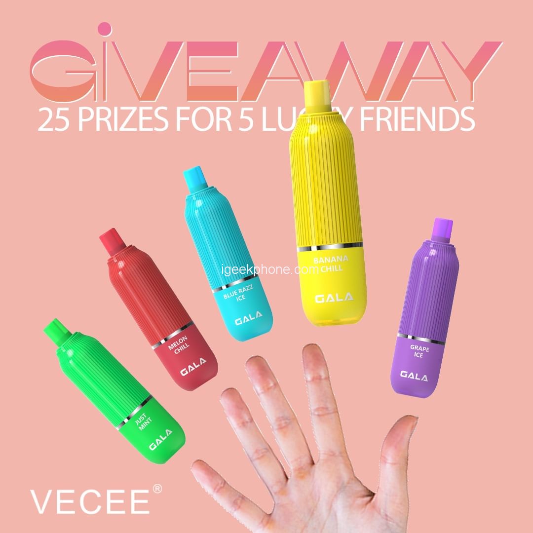 - 5 winners 5 pcs of VECEE GALA Disposable Vape (MSRP: $22.99/pc)