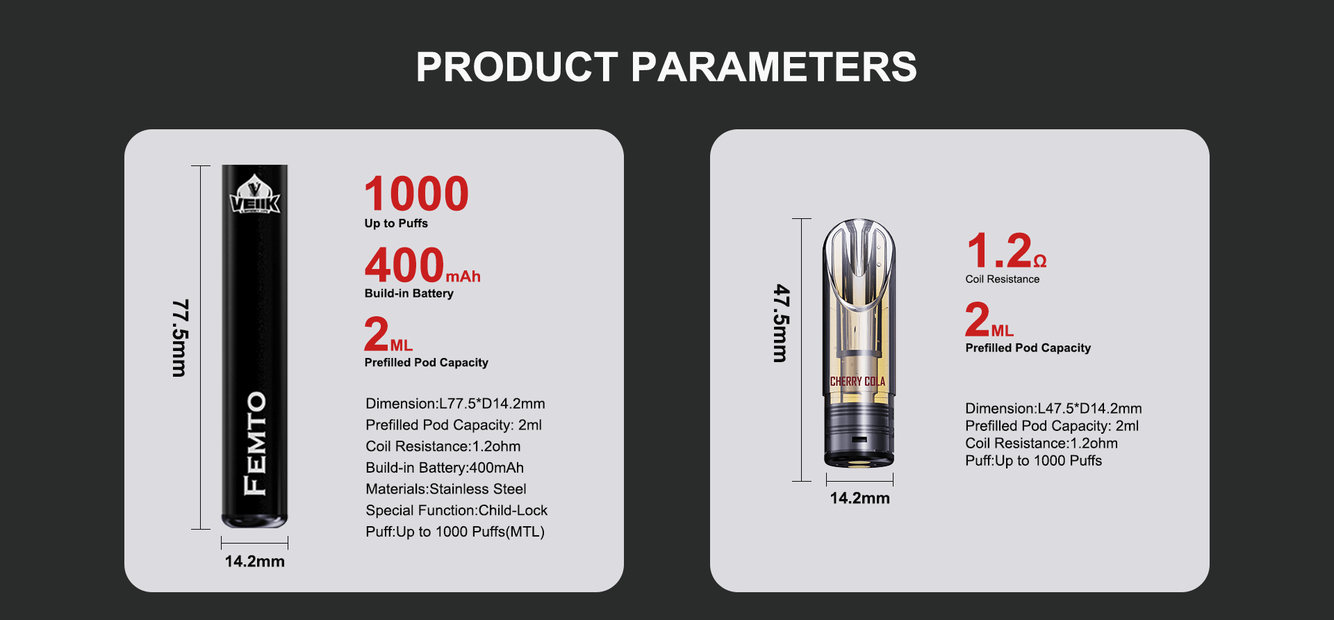 The Veiik Femto is designed for simplicity and efficiency. It has a 400mAh battery, offering up to 1000 puffs per charge. The device is equipped with a 2ml pod capacity, suitable for various fruit flavors. It features a non-variable voltage and wattage system, ensuring a consistent vaping experience. The Femto is ideal for users who prefer a straightforward, no-fuss vaping device.