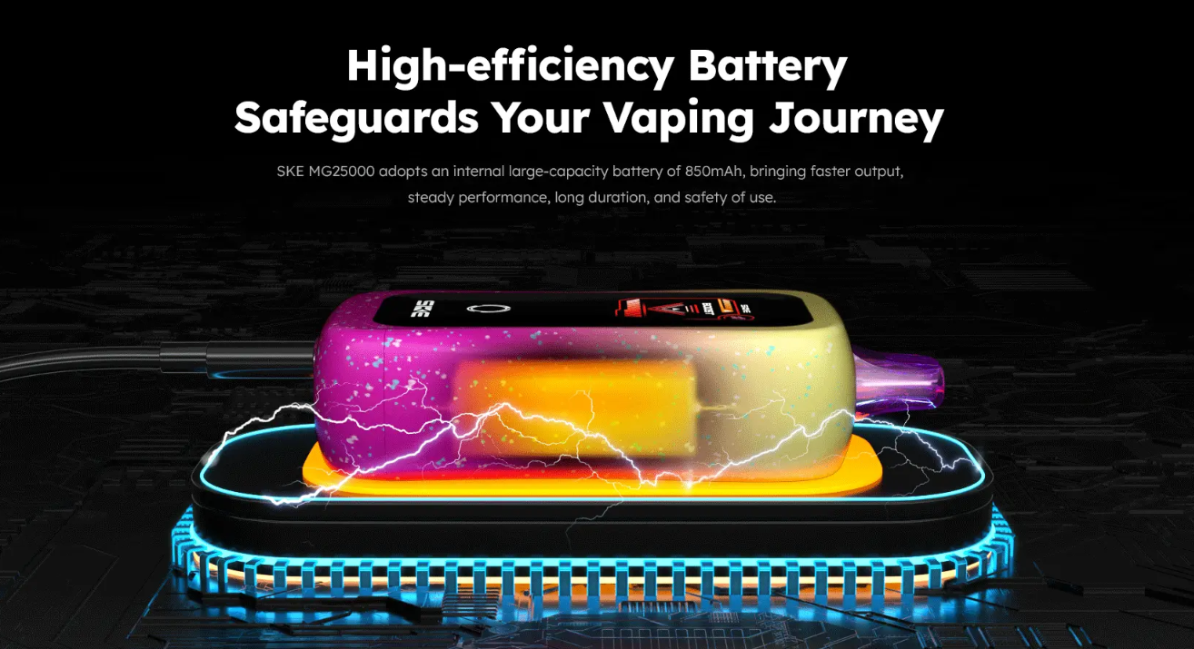 - 850mAh Rechargeable Battery: Unlike the Night ELF’s single-use setup, the SKE MG 25000 features an internal rechargeable battery (850mAh) that can be charged via USB Type-C. This allows users to recharge the device as needed, making it a more eco-friendly option.