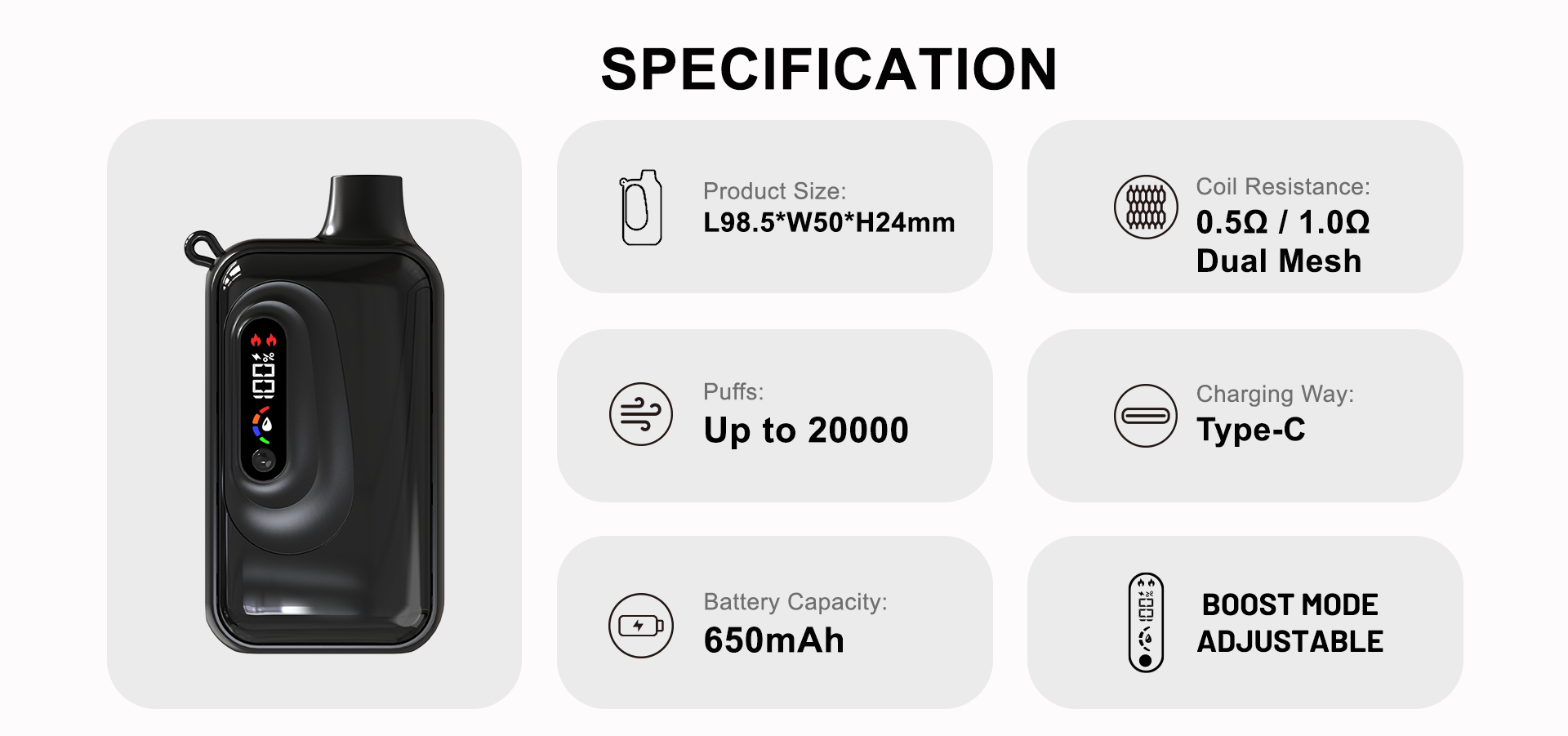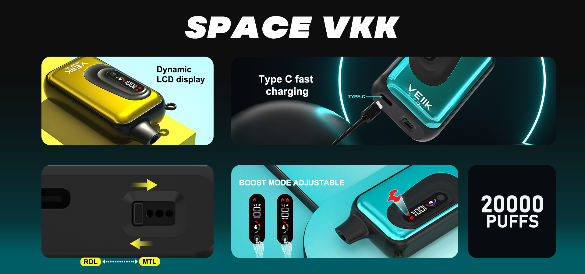 The Veiik SPACE VKK capacity for puffs is one of its most distinctive characteristics. With up to 20,000 puffs, this vape guarantees dependable use prior to requiring a substitution. The gadget upholds both RDL (Confined Direct Lung) and MTL (Mouth To Lung) modes, taking special care of various vaping inclinations. The flavor and vapor production of the dual mesh coils, which have resistances of 0.5 ohms and 1.0 ohms, are enhanced, resulting in a consistently satisfying vape.
