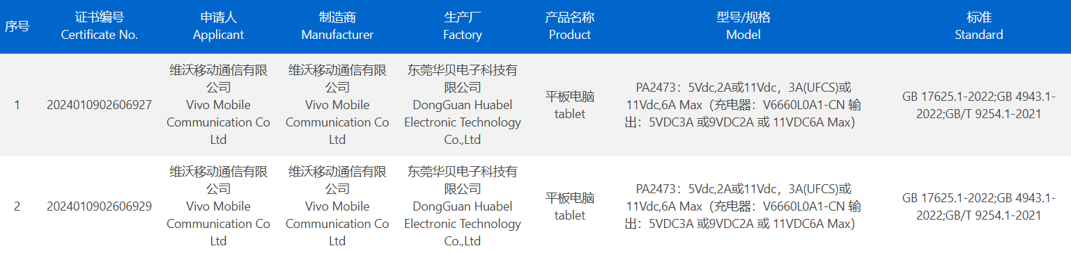 IGEEKPHONE February 6th news, a few days ago, there is a model of “PA2473” vivo’s new tablet through the domestic 3C certification, is expected to be the upcoming vivo Pad 3.