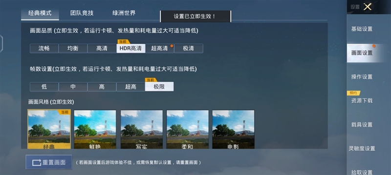 We initiated testing with the Peace Elite mobile game. Under HDR high-definition picture quality + extreme frame rate, we engaged in a fierce battle. The average frame rate stabilized at 59.64FPS, with occasional slight frame drops that didn’t significantly impact overall picture stability.