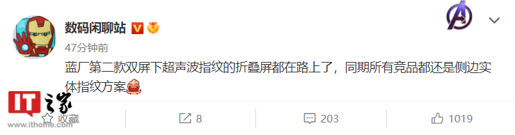 According to Weibo user @Digichat.com, Vivo’s second dual-screen ultrasonic fingerprint folding screen is already on the way, while all competing products are also equipped with a side-by-side physical fingerprint scheme.