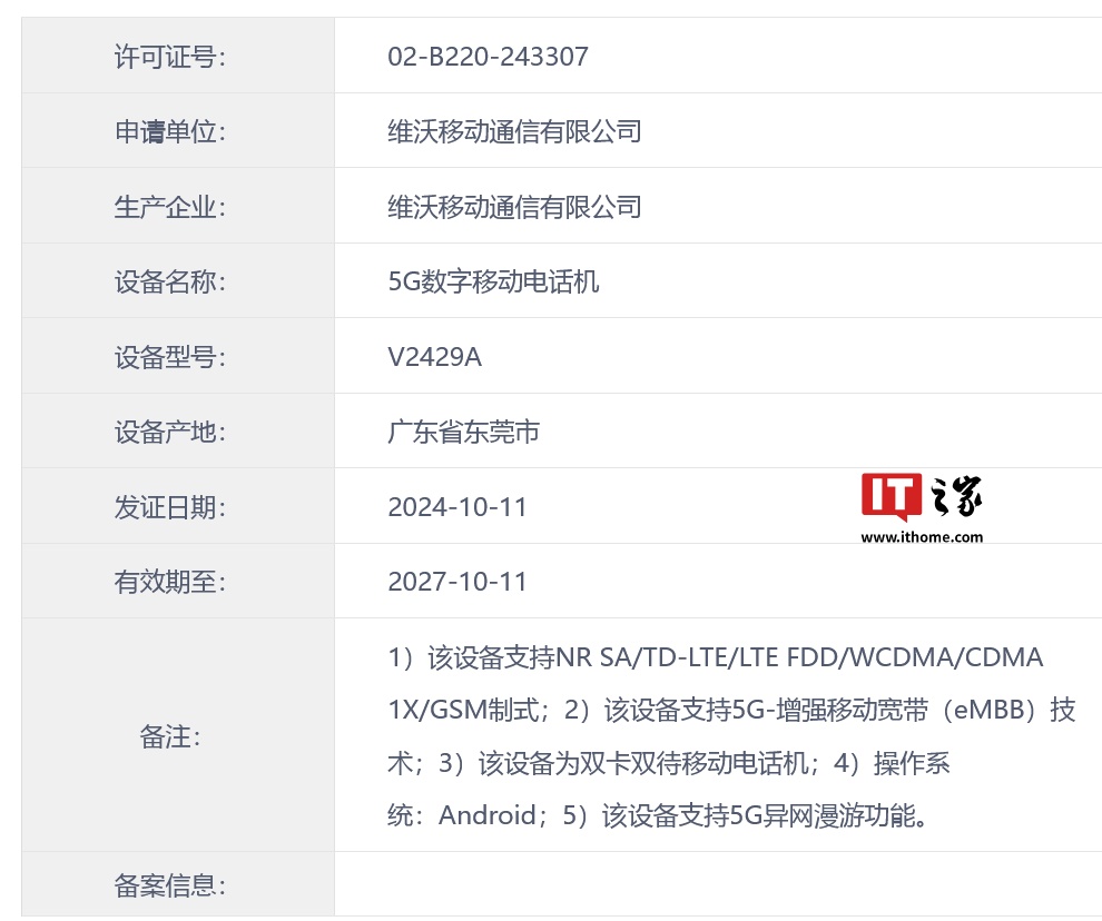 Igeekphone October 18 news, the model of “V2429A” vivo mobile phone in October 11 to obtain telecommunications equipment access license, according to the previous IMEI database display information, the machine is estimated to be Vivo X Fold 4 folding screen mobile phone.