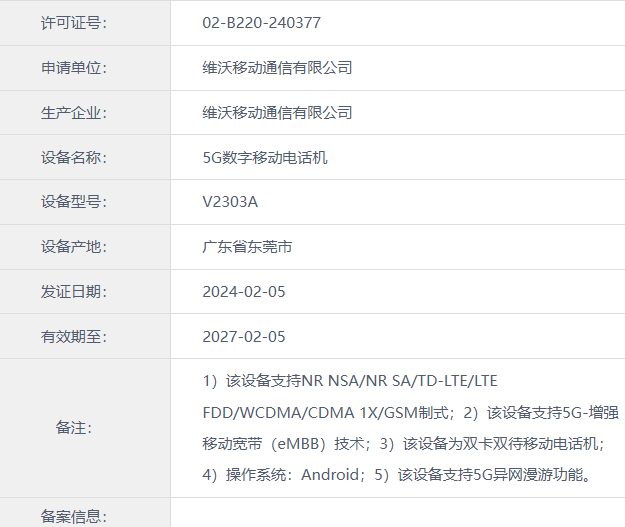 IGeekphone February 9 news, recently there are two models of V2303A and V2337A mobile phones in the Ministry of Industry and Information Technology network, is expected to be the upcoming release of vivo X Fold3 / Pro mobile phone, and previously appeared in the GSMA IMEI database model.