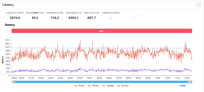 The device consumed an average of 2.57W, with per-frame consumption measured at 42.9mW.