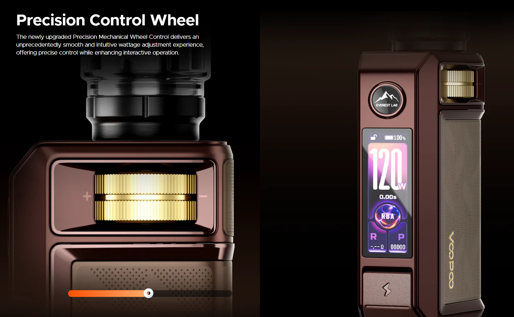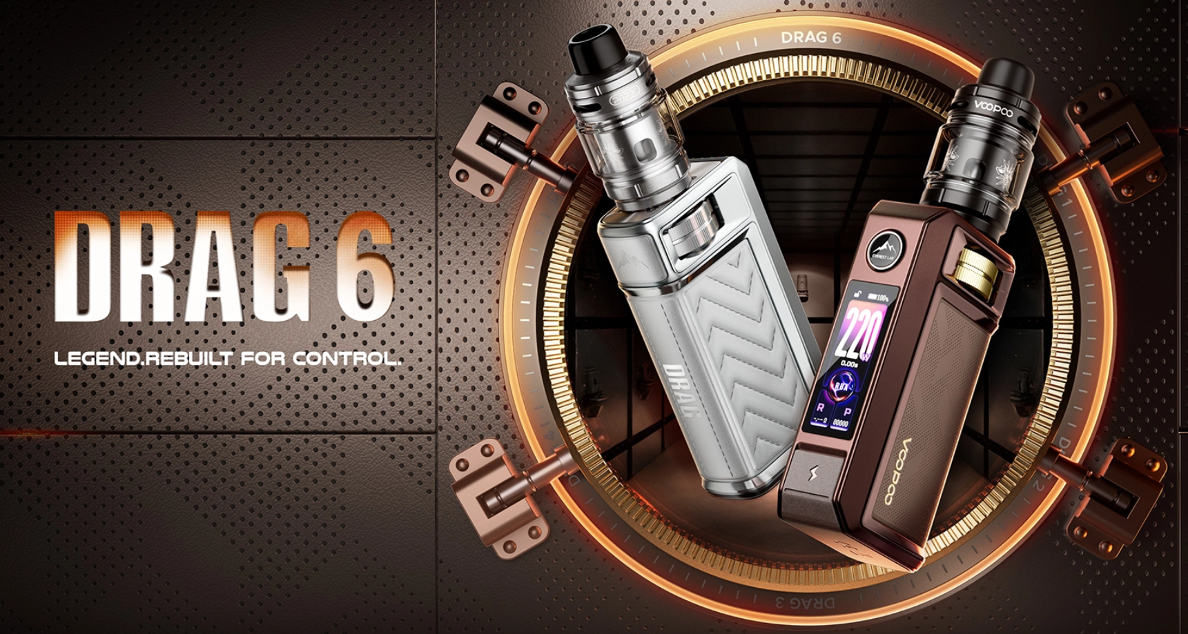 The VOOPOO DRAG 6 features a modern and professional design built from durable zinc alloy. Its structure focuses on precision control and intuitive interaction, highlighted by the precision mechanical control wheel that allows smooth wattage adjustments. A notable addition is the capacitive unlock sensor, enabling users to unlock the device with a simple touch, improving both convenience and safety.