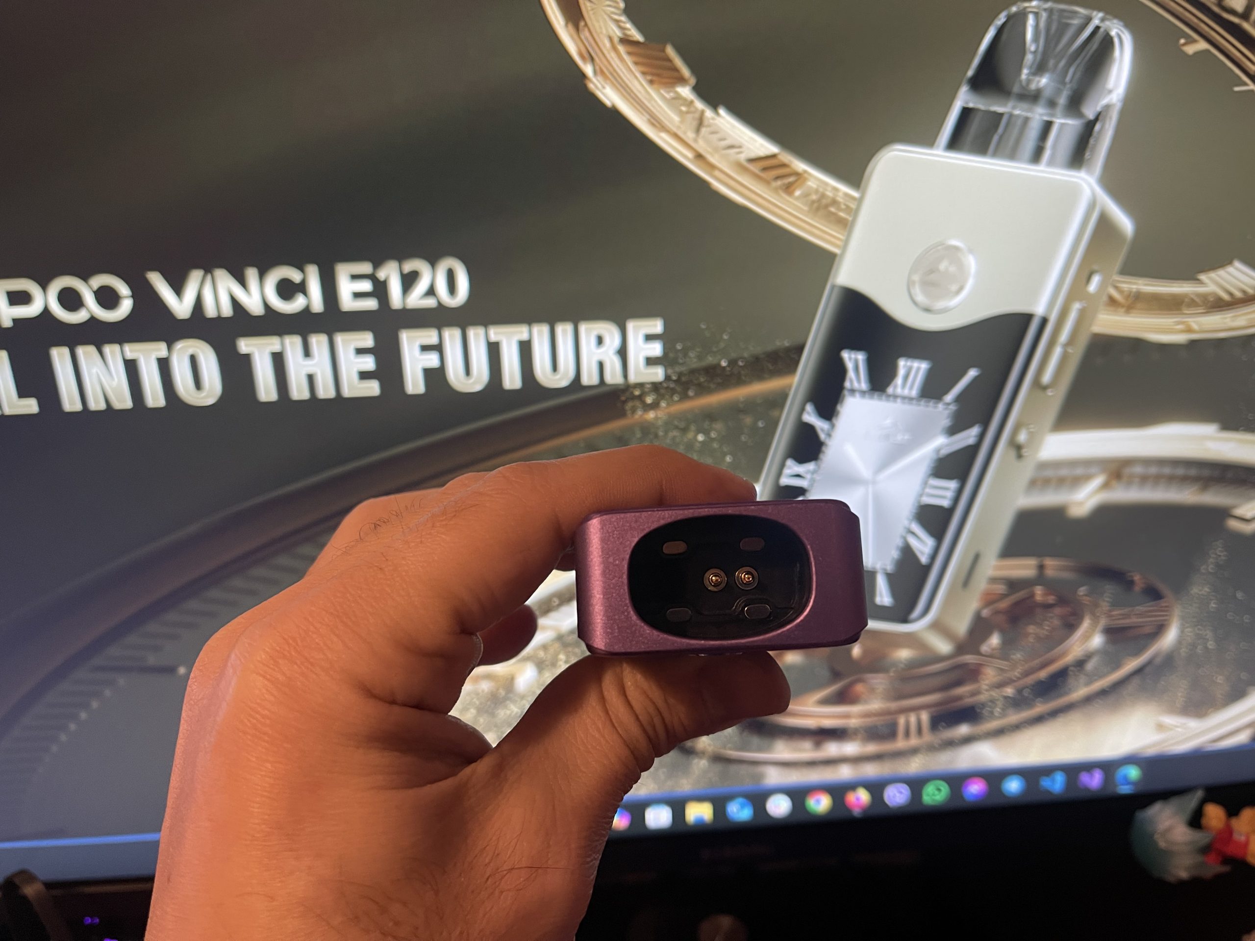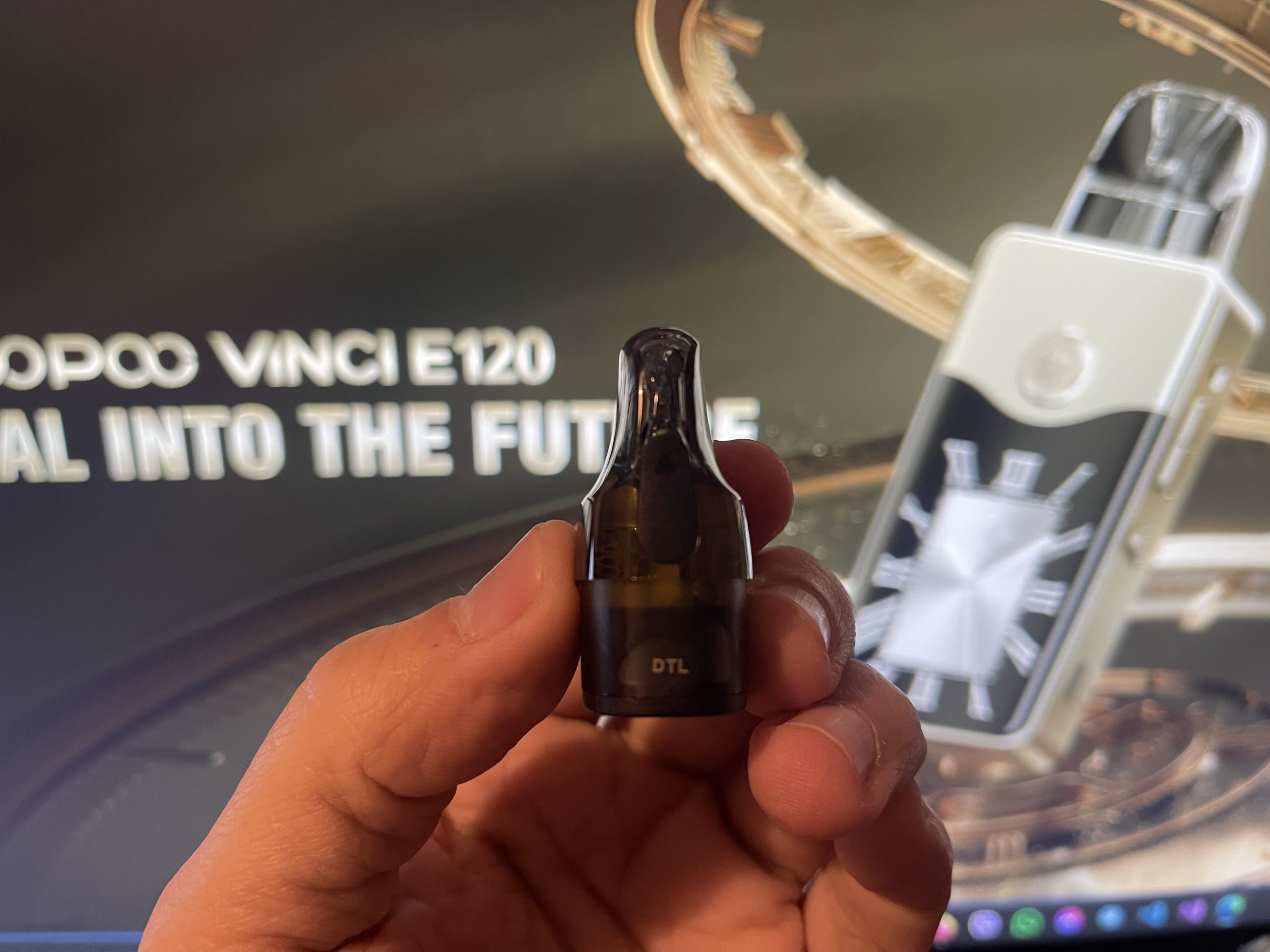 Out of the box, the Vinci E120 delivers a high-end feel with its gold-accented buttons and clean design. The pod attaches securely via strong magnets, ensuring a tight, leak-free fit.