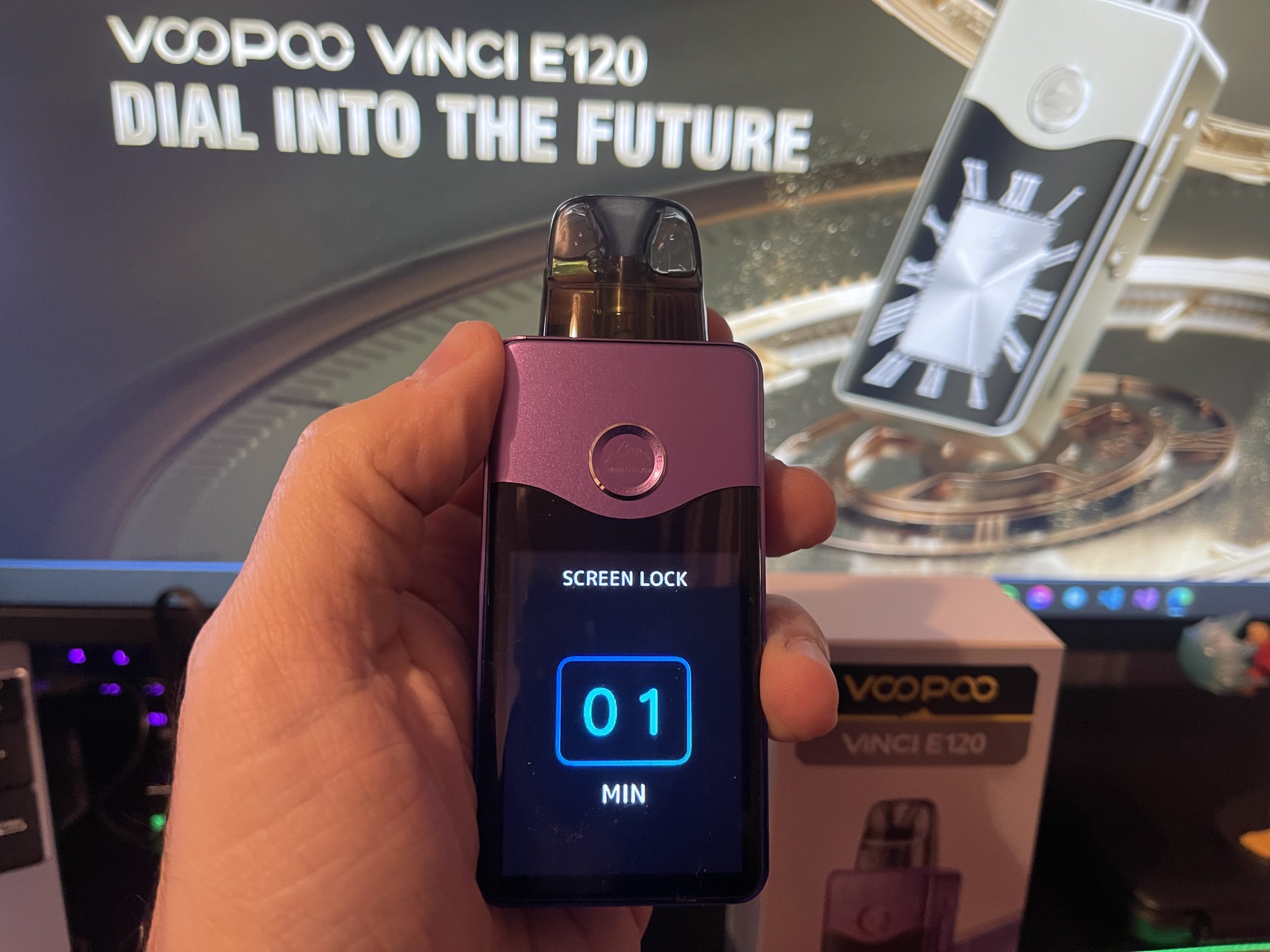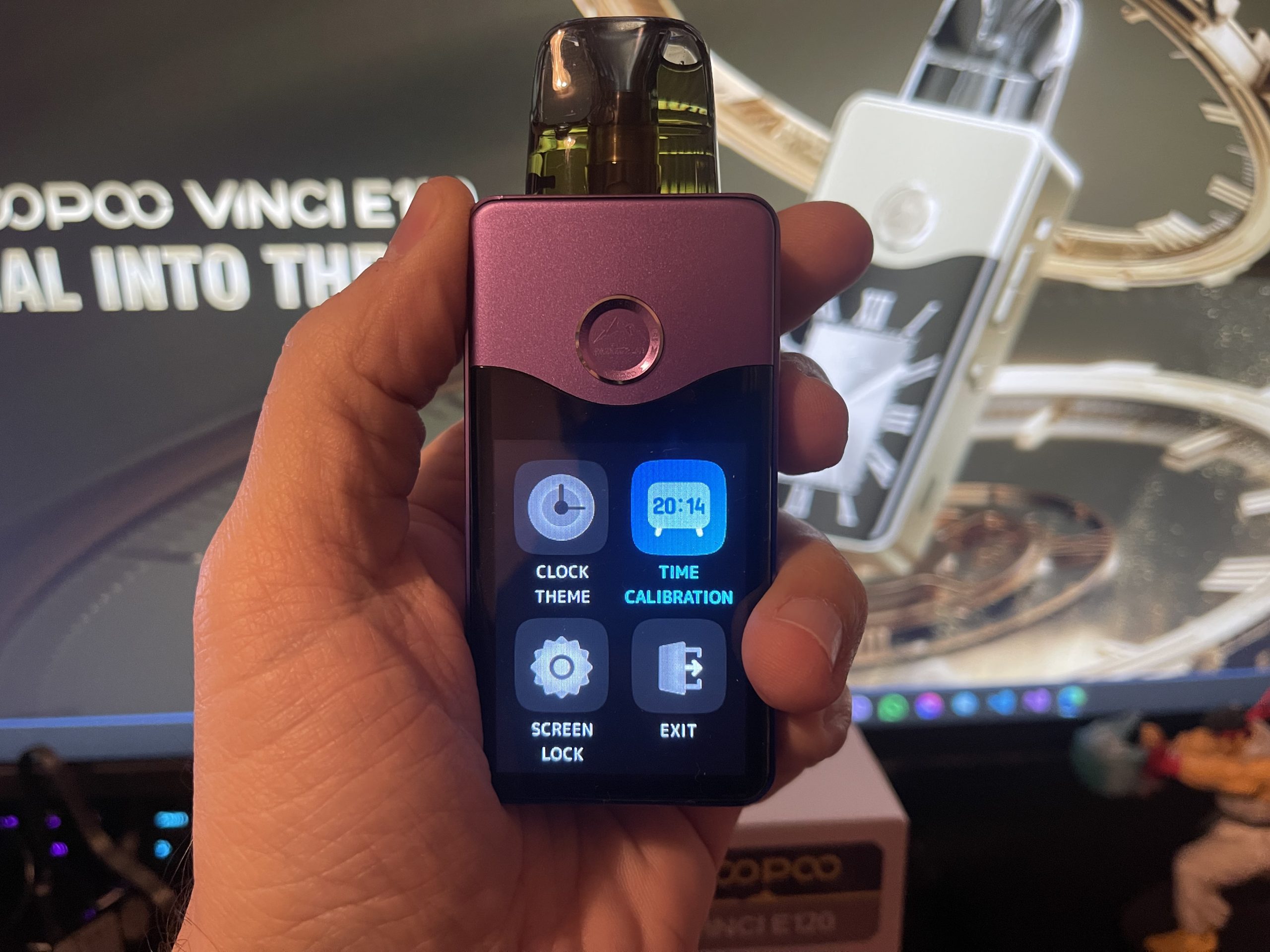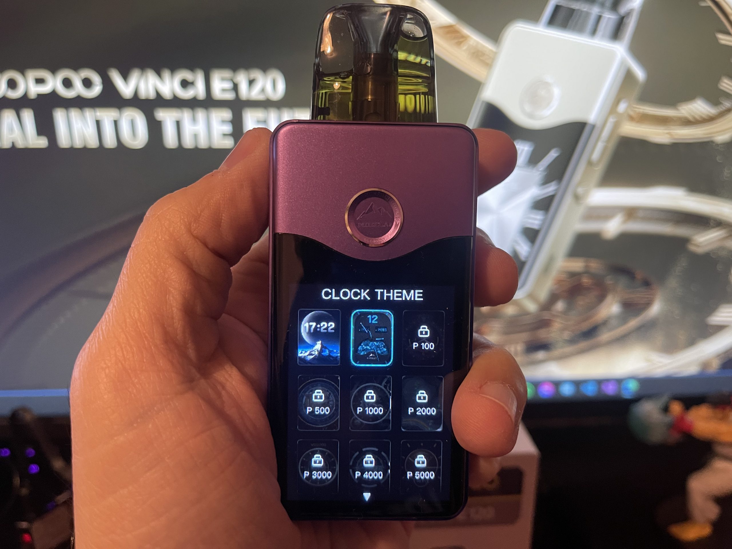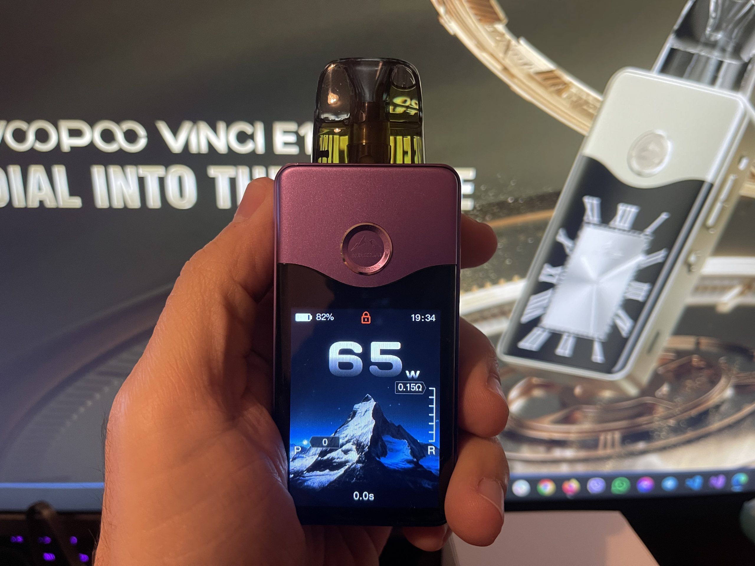 The VOOPOO Vinci E120 exudes modern sophistication with its sleek aluminum alloy body, gold-trimmed accents, and lightweight yet durable construction. The 2.4-inch TFT screen is not only large but also fully customizable, offering 18 watch face options that unlock as you continue vaping.