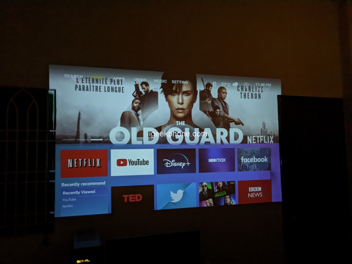 The Wanbu T2R Max Projector lets you do everything you’d expect from a smart TV. With Google Play preloaded, you’ll have access to over 500,000 TV shows and movies. Easily customize your home screen, upload photos, videos and music from your smartphone. Use your voice to get answers to questions or get recommendations about what you need from the Google Assistant.