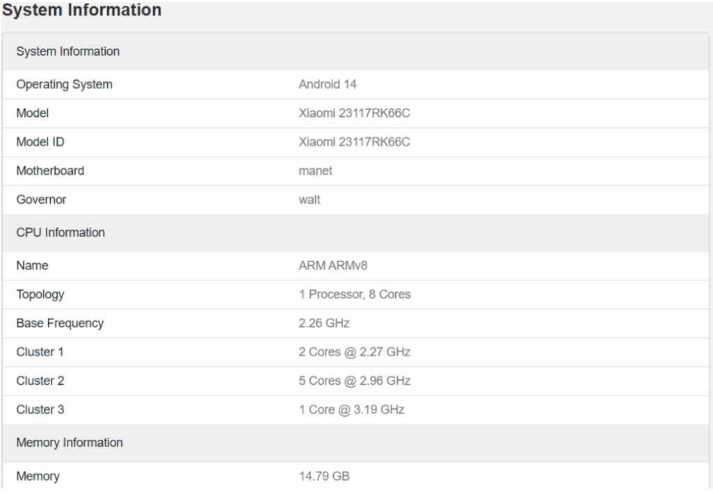 23117RK66C model has appeared in the GeekBench running library, equipped with Snapdragon 8 Gen 3 processor, basically can be determined to be Redmi K70 Pro. The product, code-named Manet, has a single-core score of 1100 and a multi-core score of 5150 in version 5.5.1.