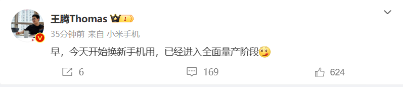 Igeekphone news on November 7, Redmi brand spokesperson and general manager of Redmi Marketing Wang Teng tweeted, suggesting that the new mobile phone has entered the full mass production stage.