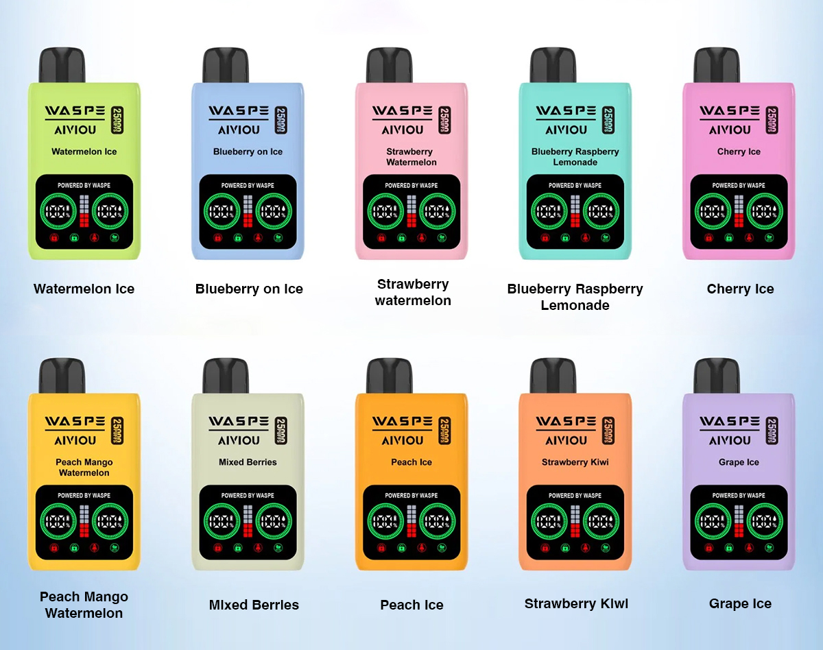 An LCD display is included to show you important information like the battery life and the number of puffs. You will have complete control over your vaping experience thanks to this feature, making it possible to have a more individualized and enjoyable session. The WASPE 25000 25K Puffs Dual Mesh Vape comes in ten distinct flavors, allowing you to select the flavor that best suits your mood and preferences.