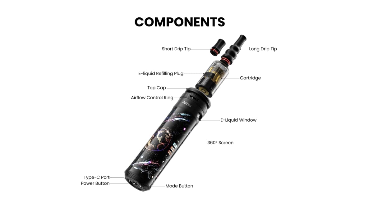 In addition, LOST VAPE ASTARA product can be used with two different mouthpieces. Among them, the short mouthpiece offers a “warmer, richer, and thicker” taste; while the long mouthpiece provides a “softer, smoother, and more similar to shisha” experience.