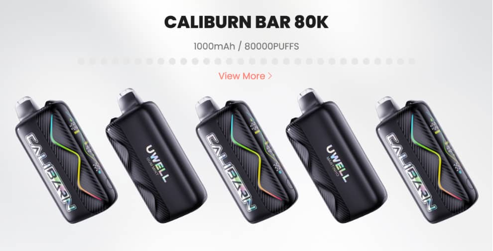 • With a Capacity of 80,000 puffs, 6 Power Settings and 3 air intake options, UWELL has launched the one-time-use Vape CALIBURN BAR 80K