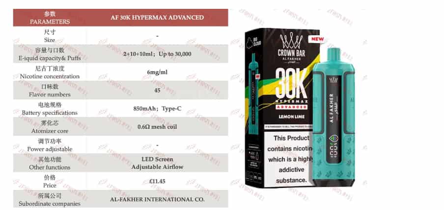 Currently, the AF 30K HYPERMAX ADVANCED e-cigarette has landed on the websites of e-cigarette distributors such as vapeverse and ninja-vape in Europe, and the product price is approximately £11.45.