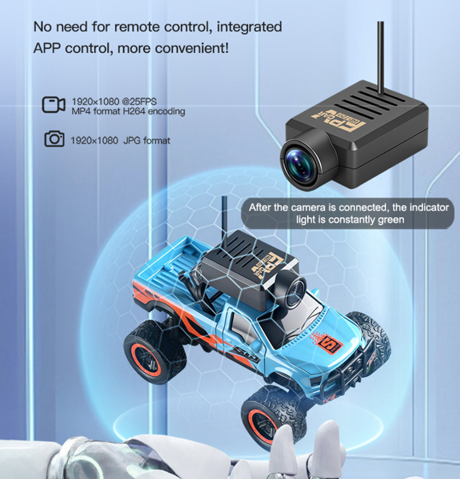 The highlight, though, is the high-definition, zero-latency Wi-Fi camera. Through the app, you get live FPV footage along with photo capture, video recording, and even a VR mode. The 6407 model (as opposed to the 6407-C) also comes with a dedicated monitor that displays the real-time camera feed and supports onboard photo and video storage with a memory card. That monitor runs on a 3.7V 1500mAh battery, giving you around 160 minutes of screen time, plenty for long sessions.