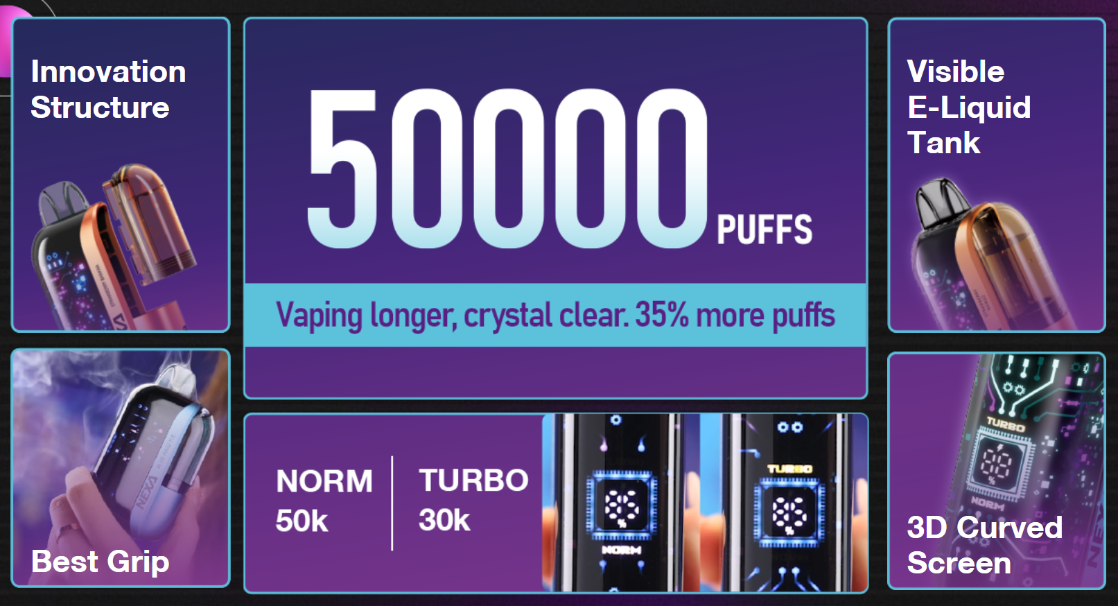 - Opt for NEXA Ultra if you prioritize ergonomic design, flavor clarity, and hassle-free vaping. Its Crystal Tank, sleek grip, and 15 flavor options appeal to users seeking sophistication without complexity.