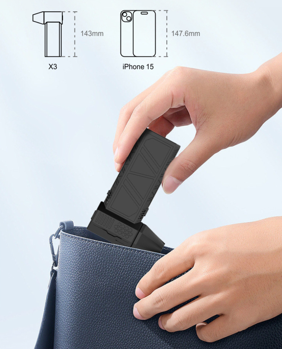 - Portable and Compact: The fan’s small and lightweight build is a key feature for those who need a portable cooling solution. Its compact size allows for easy transport, whether you’re using it outdoors, in the office, or while traveling. Despite its miniaturized form, the X3 delivers impressive power, making it a reliable choice for anyone on the move.