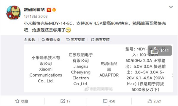 According to the latest information found by netizens on Xianyu, a 90W Mi charger has recently appeared on Xianyu platform, which supports a maximum output of 20V 4.5A, which is consistent with the previously certified specifications, basically confirming that the charger is ready for the Mi 13 Ultra, which will debut soon. If the claims come true, it will finally make up for the fact that its predecessor, Xiaomi 12S Ultra, only supports a 67W fast charge. Although the 90W fast charge specification does not seem to have much advantage in the current situation of hundreds of watts, but for a large cup flagship that needs to take into account all aspects of top performance, it can greatly improve the experience of fast charge.