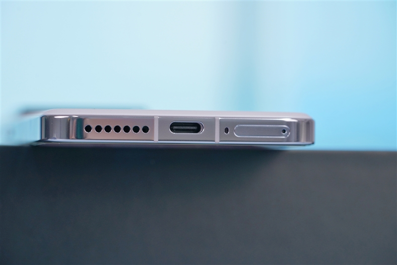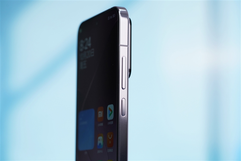 The volume buttons and power button of Xiaomi Mi 14 are concentrated on the right side. At the bottom are the noise reduction microphone, SIM card slot, and USB-C opening.