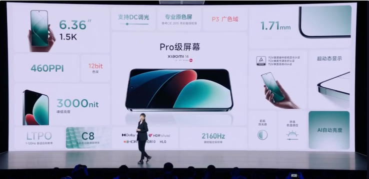 Xiaomi Mi 14 boasts a 6.36-inch 2670×1200 OLED direct screen developed by Xiaomi and TCL CSOT, using CSOT C8 luminescent material. The screen has a 1.5K resolution and a PPI of 460PPI, providing a similar experience to the iPhone 15 Pro.