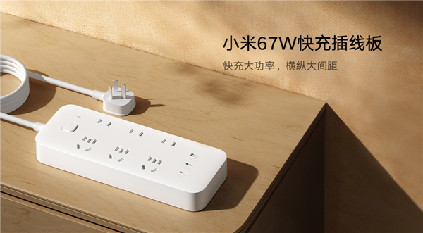 In terms of ID design, Xiaomi 67W fast charging plugboard uses a specially designed 42mm horizontal spacing and 28mm longitudinal spacing, which can cope with all kinds of common plugs and power adapters, while taking electricity without interfering with each other.