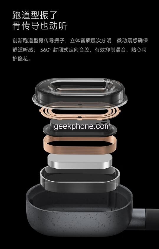 The new earphones use bone conduction technology, which uses the vibration of the vibrator to cause the skull to resonate. Users can also hear the sound of the outside world when listening to music so that they can always pay attention to the environment.