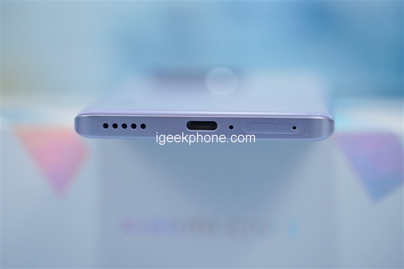 The top of Civi3 integrates an infrared remote control sensor and a noise-canceling microphone, and the bottom is equipped with a single speaker, a Type-C and earphone two-in-one interface, a microphone, and a SIM card slot.