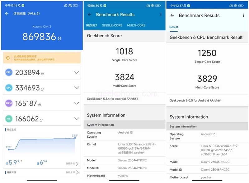 Xiaomi Civi 3 is equipped with MediaTek’s latest 4nm mid-to-high-end chip – Dimensity 8200-Ultra. The version we have is the storage version of 12GB LPDDR5+512GB UFS3.1. This chip is very rare in a selfie-focused phone, so we ran a set of performance tests to see how well Civi3 tuned the chip.