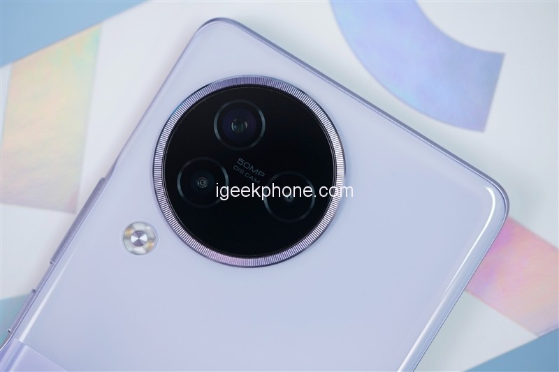 This double combination of half-tones will be the design trend of 2023-2024. The color scheme we have is rose-purple, which looks very healing. The rear three-camera module uses a 50-megapixel IMX800 main camera, an 8-megapixel IMX355 ultra-wide-angle lens, and a 2-megapixel OV macro lens.