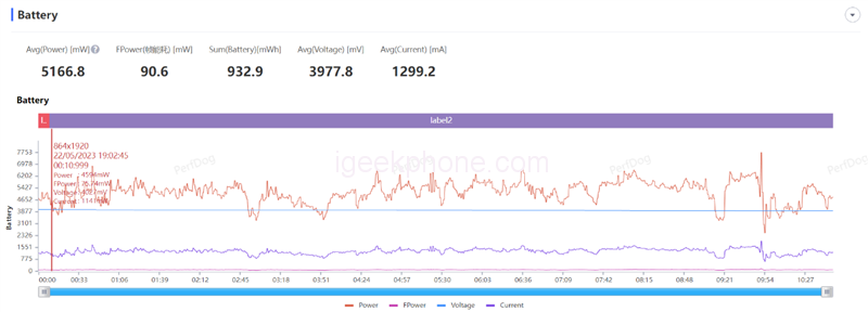 In the 10-minute Yuanshen mobile game, the average power consumption has also reached 5.17W, and the frame energy consumption is 90.6mW. The energy efficiency ratio has also reached 11, which is a little higher than the Dimensity 8200 models of other competitors.