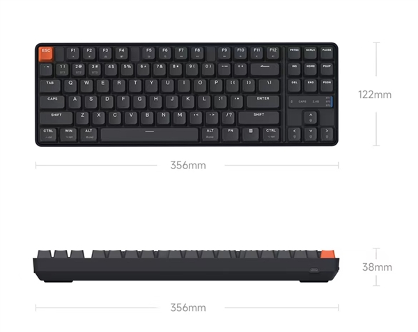 Xiaomi mechanical keyboard TKL adopts compact 87 key layout, provides linear axis VC Pro, paragraph axis VB Pro two styles, the former is suitable for office code words, the latter is suitable for playing games.