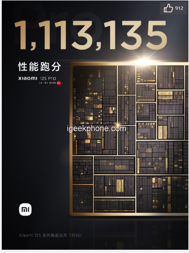 Previously, Xiaomi mobile phone announced that the Snapdragon 8+ Gen 1 chip on the Xiaomi 12S Pro had an AnTuTu running score of over 1.1 million.