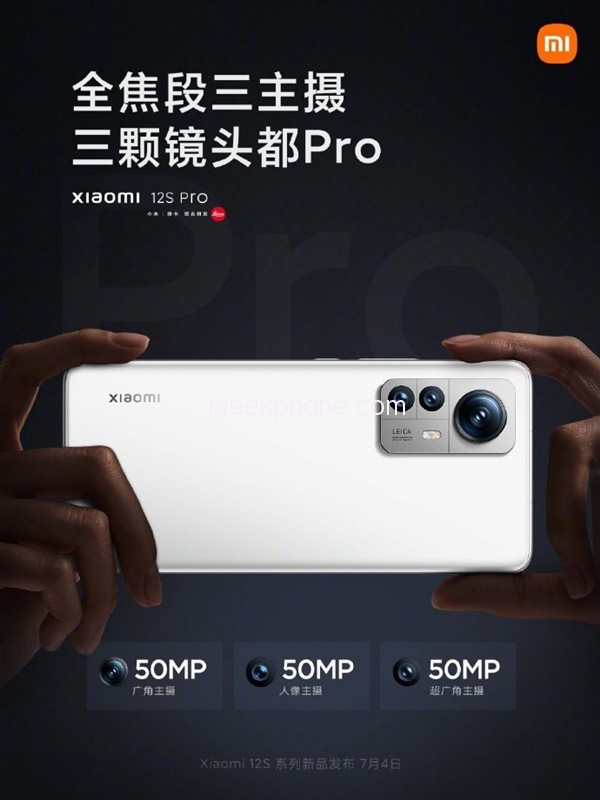 According to Lei Jun, Xiaomi Mi 12S Pro Leica native dual image quality, full focal length Leica image, three Leica professional optical lenses, all 50 megapixels.
