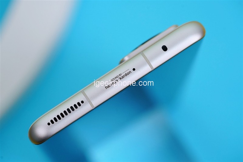 In terms of interface, the upper and lower double holes are opened, and a stereo system with four speakers is provided inside. There is also a lot of infrared, microphone openings, SIM card slots, etc. on the top, as well as the certification icon of Harman Kardon. Both hardware and software are very powerful.